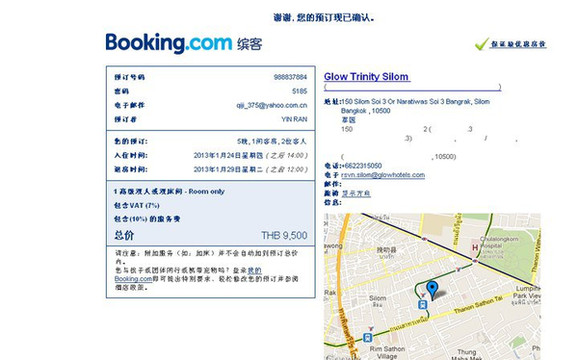 订的8夜房价换人民币是3300多,就靠着BTS轻轨chongnonsi站,很方便,booking上订房间不收手续费,也不会要求信用卡的预授权,只要填了信息即可。如果行程有变动,在入住前4天之前都可以免费取消。