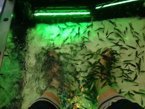 这家fish spa是在patpong夜市旁边的日本街上,15分钟150泰铢,还蛮好玩的。