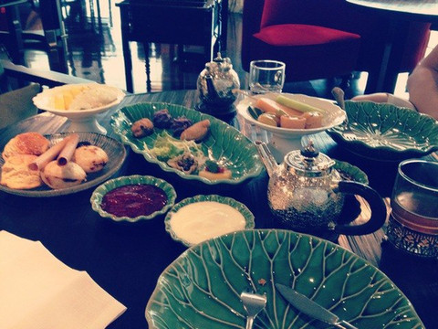 这是一家喝下午茶的地方,都是泰式点心,装潢和餐具也都很洋气高档