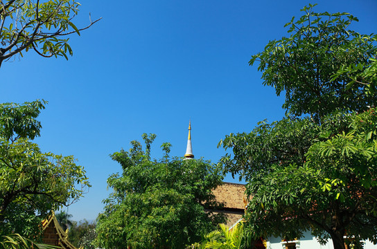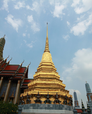 寺院正中有一座高约20米的大金塔,建于16世纪,据说塔内保存有佛祖释迦牟尼的舍利子。塔顶有泰王所赠的水晶莲花。