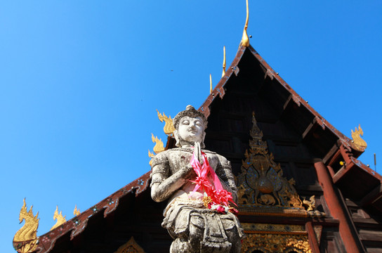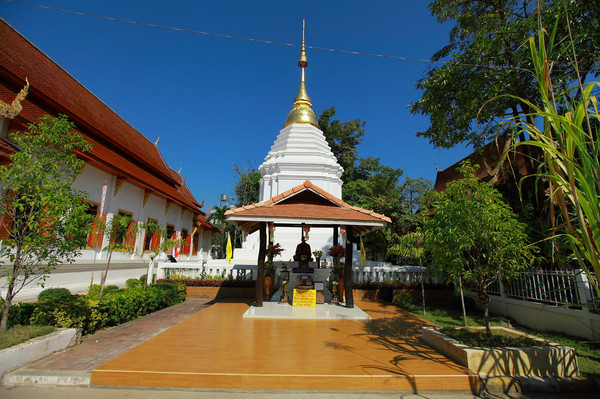 寺内有东西南北4座佛殿,分别有长廊相连,成四方形,每座殿内供有一尊金身大佛,正殿莱甘堂内供奉有被视为泰北最具灵性的三尊佛像。
