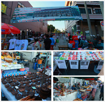 接着来到的周末市场,只有周末4点才开市,偌大的市场东西却应有尽有。吃的,穿的,用的。大多都20泰铢。唯一稀奇的是在人来人往的市场上,连一块垃圾都没有,就连污水油渍也没看到。逛了大概6点左右,街道的行人都突然停下,刚开始以为发生什么事了,后来才知晓是这边放国歌,泰国人的信仰,听到国歌必须停下。真的不得不敬佩他们国家的宗教信仰。
