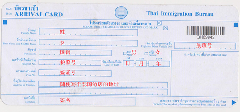 泰国入境卡