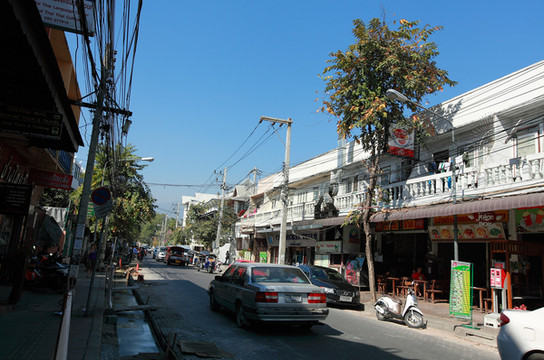 颠簸了十几个小时,终于到了,是泰国第二大城市,也是泰国北部政治,文化的中心,其发达程度仅次于。由于第一次拜访这个城市,再加上我们到达的时候已经差不多凌晨0点了,前天晚上基本上没有睡眠,真的是已经筋疲力尽了。随便拦了辆TAXI(泰国人称之为“嘟嘟车”),叫价300泰铢,我们几个扭头掐指算了下,人民币才60块,满便宜,熟不知被人坑了哇。我们第二天才知道原来无论远近,嘟嘟车都是每人20泰铢。呜呜哭死。