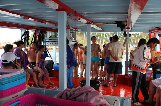 正在等待潜水呢,冷死了。但是在水里不冷,就是时间太短了。不好玩~ 不推荐。主要是靠人在水里带队的。