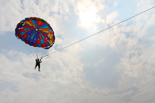 刚开始坐这个飞伞的时候,我的肾上腺素就开始激增, 不一会儿,我们就在浩瀚无边的大海上飞起来了,怎一个“爽”字了得哇。