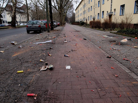 走在马蹄形小区的街道上,放眼过去都是昨天欢庆新年后留下的垃圾。