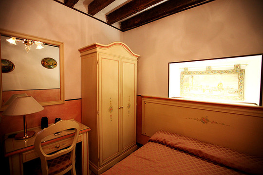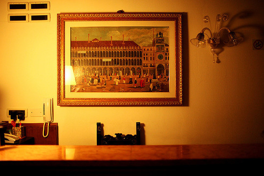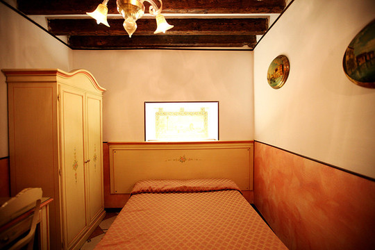 这是我们住的小酒店,找了许久,原来我们站的这个广场左边的桥上面带小花的就是我们的酒店。这是我们住的B&B酒店一层。B&B酒店就是指bed and breakfest酒店,类似于我们这边的家庭旅社,包早饭。欧洲那边的人将多余的房间空出来作为家庭旅店,布置的很温馨。威尼斯第一站的这个就是14世纪的一幢老房子,他们给我们钥匙,我们就去这幢房子自己出入了。价格也不贵,差不多人均40欧,这在如此昂贵的威尼斯已经相对很好了。连威尼斯的一些华人旅社都要60多欧一晚上。自由行的朋友可以考虑看看。