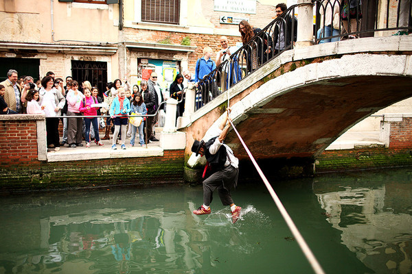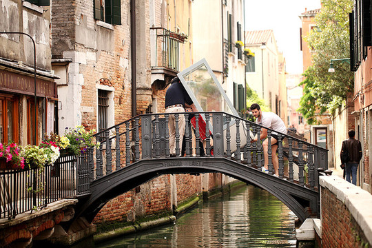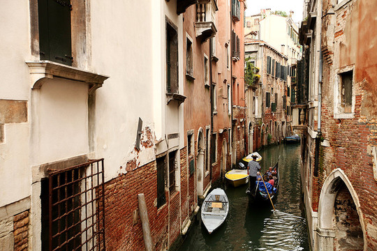 在古老的威尼斯,没有汽车,没有自行车,搬东西只能靠人工。
