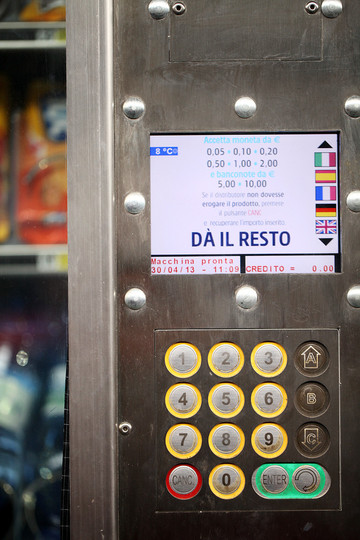 来看一下第一次在意大利使用投币买水。真是纠结啊。。。鼓捣了半天,结果买出来一瓶,一阵开心兴奋,一开瓶子。。。完蛋了。带汽的。。。后来学乖了,欧洲买水先问或者先看看瓶子上是不是写了:natural!!!