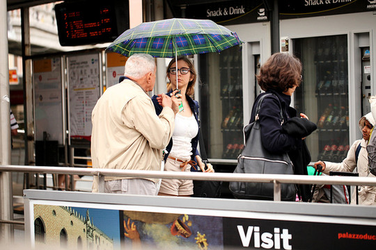 都说米兰治安不好,下飞机的时候遇到了在都灵定居的温州老乡,她和先生帮我们找到了米兰机场到火车站的大巴,在异国他乡遇到国人,总让人觉得心存温软,。她提醒我们米兰的假警察很多会把你带到其他地方然后抢护照和现金,要注意安全,意大利的南部小偷较多,特别是吉普寨流浪人很多,会帮你买票要小费,也要当心。前晚入境的时候,眼看着其他国家的人只是对了对护照就被放行了,我心中不由得担心起天朝的护照在国外的执行度。温州大姐安慰我说没关系,意大利人还是很友好的。一直都相信,如若让别人真心对你,你也需要对对方的尊重。果然轮到我的时候,长相友好的海关大叔问我一堆问题,很久没碰英语,之前也没有预习,遇到一连串英文问题,我当时脑子一片空白。也不知道他到底问了我什么,开裆裤和大姐在后面提醒我,说是问我从哪里来,在这里呆多久,为何在意大利入境等等,这是多么简单的问题呀,我却听不懂,掩面而过。。。我忙回答:“我来自上海(因为当时办护照是上海办的),来旅游。”大叔友好的笑笑带着很夸张的表情用蹩脚的中文说道:“OH,上海!你好!谢谢!”然后就给我盖了章,还跟我说“谢谢”!海关大叔的友善和不刁难瞬间让我对意大利人产生了莫名的好感。
