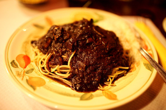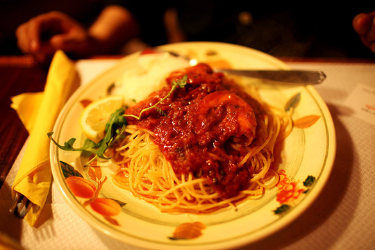 在如此漂亮的餐馆的诱惑下,我们不免饥肠辘辘。也找了一家漂亮的餐馆坐下吃晚饭。不过最后吃到的墨鱼面并不正宗。