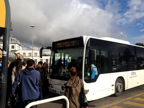 COTRAL/SCHIAFFINI 巴士与机场连接,每 30 分钟一班。机 场和火车站之间的行驶时间平均为 5 分钟。可以在上车前或上车后购票,票价 1 欧元。在中央火车站坐火车到Ciampino小镇,出小镇车站门口就有去机场的BUS。手机拍的几张照片,如图: