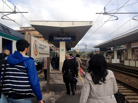 分钟。价格 1.30 欧元(关于时刻表、路线和停靠的详细信息请查阅网站 www.trenitalia.com)。恰米皮诺市火车站通过