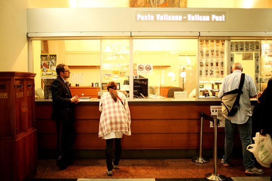 到了里面的柜台,凭单子换正式的门票,就可以了。有租用中文讲解器的,记得一定要自己带好耳机。提着讲解器很重,而且听起来不方便。租用讲解器要护照做抵押的,如果几个人一起的话,用一本护照就可以了。邮局没有免费笔供应写明信片的。记得自己带笔。那里最便宜的笔一欧一支。