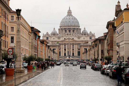 由于下雨和人多,没有爬上去看著名的钥匙孔。这个广场是著名建筑家帕尔尼尼建造的,可是这条大道确是墨索里尼改建了!一直走到底就是圣天使堡和!