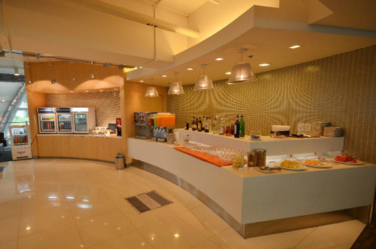 在素万那普机场,凭借信用卡权益进入贵宾休息室候机,这里真是太豪华了,高富帅才去的地方啊……我俩土鳖进来就到自助餐台拿东西开吃了!免费点心有各种三明治、糕点、小汉堡、饮料、冰淇淋、锡兰红茶,还可以高速上网,看报纸杂志等等。哈哈哈!