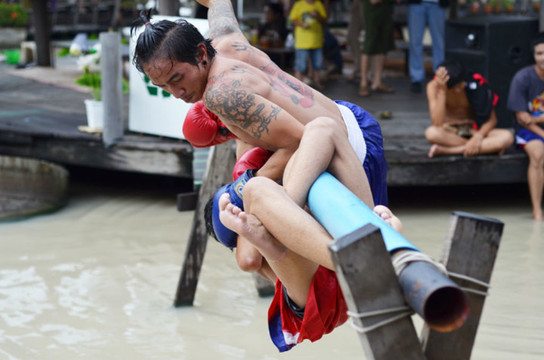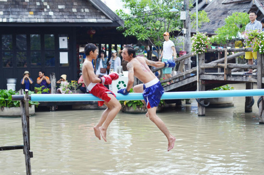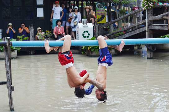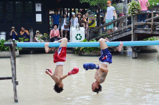 这里有水上泰拳表演,谁掉进水里就输了。我看的时候就在想一件事,他们不蛋疼吗?……= =。