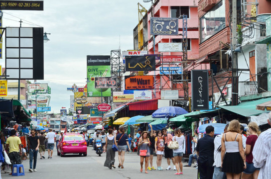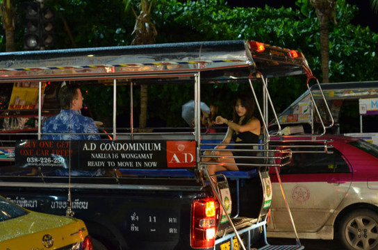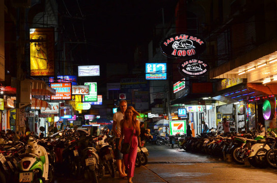 在可以很鲜明的看到中国游客和欧美游客的兴趣差别。在市区(或的),酒吧数不胜数,这里通常是欧美游客(目测是长住)待的地方,欧美人的兴趣无非就是喝酒、看球,当然还有泡泰妹,中国人的身影鲜见。而在另一些地方,比如人妖秀剧场、水上市场,就是大把大把的中国人聚集,欧美人完全不屑啊。中国人一般是以家庭为单位来泰国旅游,就算有非分之想,也是有贼心没贼胆,所以只好看看人妖秀了,而欧美人基本上是来放纵的,举家的比例小。不过据我观测,好像预订人妖秀的女性居然多于男性,至于什么原因这是另一个可以深入探讨探讨的课题了...