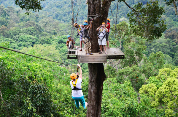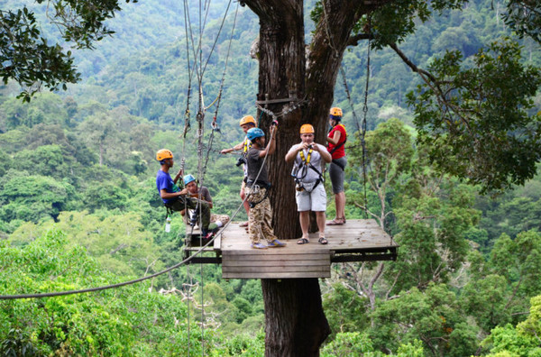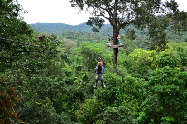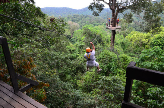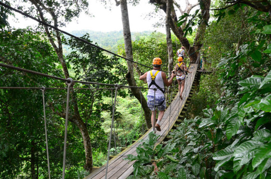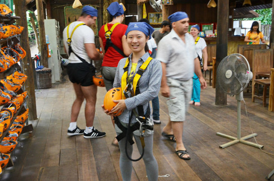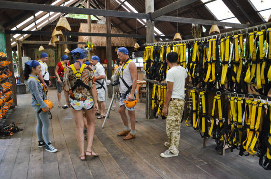 丛林飞跃是近几年在兴起的探险项目,是一种以丛林间滑索飞跃为主,结合高空索降、悬索桥、丛林徒步、夜间探险等多种形式的丛林探险活动。有丛林飞跃项目的地点主要是春武里(可从或出发)和两个地方,运营这类项目的也有三四家公司,我们参加的是treetopasia的Flight of the Gibbon(飞翔的长臂猿)。每个丛林探险团队成员都不会超过9名,同时配有2名丛林向导。