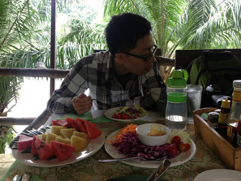 很快我们滑索到终点,还安排我们吃午饭。午饭比较简单,但是会有丰盛的水果和沙拉。