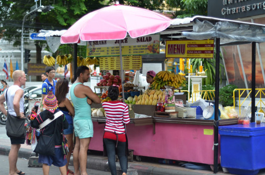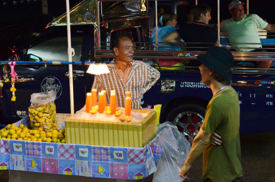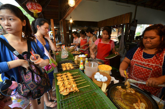 可能是口味的问题,第一个晚上到在路边摊吃的菜差点没把我们辣死,后来事实证明,菜不是很辣,就是很甜,再不然就是烧烤,好想能找到的比较清淡的菜色很少,让人高呼,就没正经一点的菜吗?而且人喝的不仅是冷水,还默认加冰,酒店的饮用水也都放在冰箱,并提供冰块,完全被西化了。我们在酒店吃自助早餐,想找找看有没稀饭,结果发现他们唯一的饭就炒饭,就像中国人早晨起来吃干饭不是很奇怪的一件事吗= =。饮食习惯差异略大啊~~