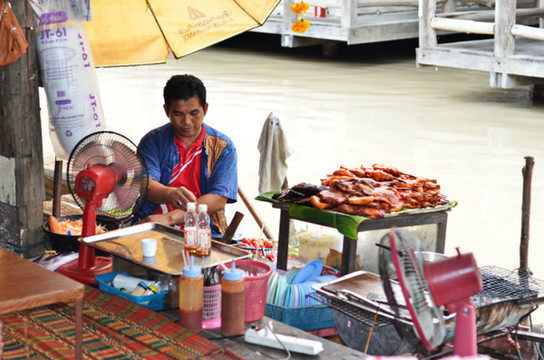 有的商家就在船上开灶,客官坐在岸边