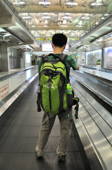 身上挂的东西真不少…… 我们预定389coach的pick up service,早上八点半直接从我们下榻的酒店接送到素万那普机场,价格跟自己去车站买票差不多(1位是230B),主要是方便和节省宝贵的旅行时间。