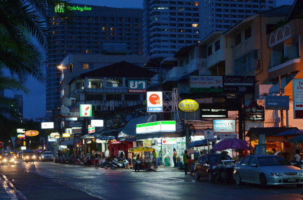 夜幕降临下的Beach road,这里到处是酒吧、餐馆、按摩店、外币兑换处