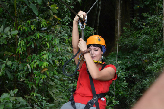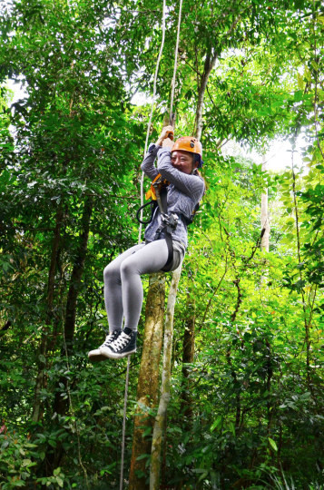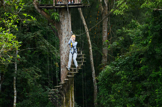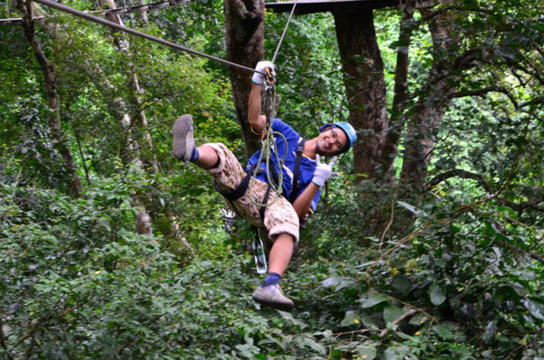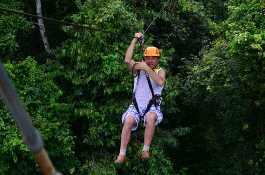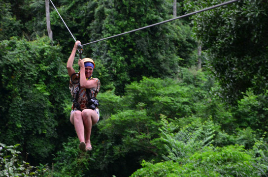 一次滑索飞跃的距离越来越长,有时要在空中穿越树林,都看不到对面的终点。最长的一条达到300米,在那次我没滑到对面就停在空中了,最后要抓住钢缆从空中徒手爬回去……