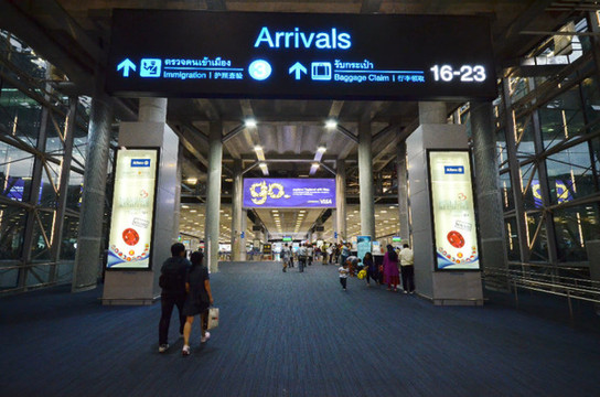 到达素万那普啦!前往就是入境处。在飞机上的入境卡填坏了,跟这里的入境官员另外要了一张卡片。