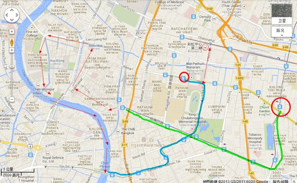 此外还借助了google街景地图,在一些重要节点比如酒店、春武里探险的pick up point等先用google街景实地考察了一下,以免当天走弯路。