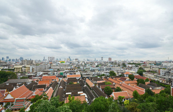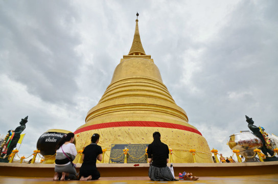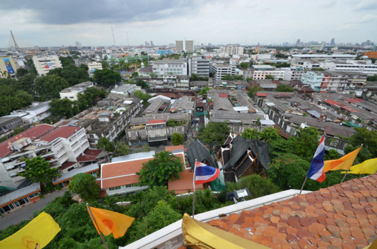沿环绕寺庙建筑的环形楼梯逐层而上,一览曼谷城景,仿佛与世隔绝