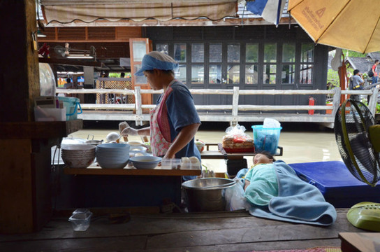 司机载我们从公园到水上市场,图中就是和我们同行的中国夫妇。他们昨晚刚去看了蒂芬妮人妖秀,男的表示表演中规中矩没有出格的情节,没啥好看。不然呢……