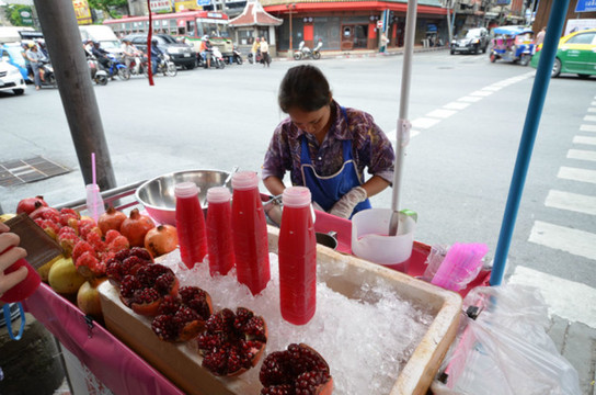 中国城卖的石榴汁,口味很好。在这样占道经营的小摊非常多,中国的城管精力过剩的话可以输出到来管一管
