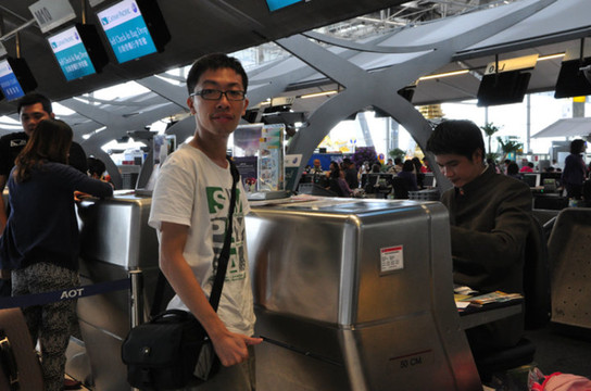 在素万那普机场,值机柜台的帅哥英语还是很好的,而且很友好地给我们解释好机票和行李事宜。