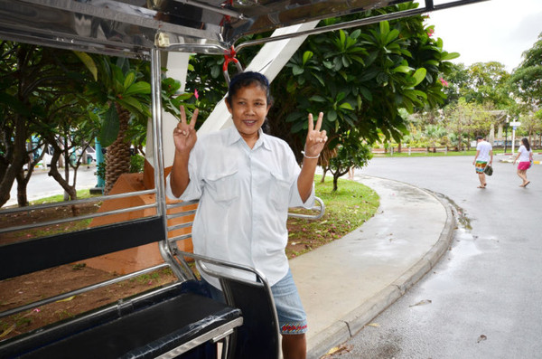 找了3家,1家是正规旅行社,1个是路边野导游我们不放心,另1个是白人在当地开的小代理。后两家都不在elephant village,地方偏,价格便宜,我心怀戒心没去。结果因祸得福的是在一家旅行社里遇到一对广州来的中国夫妇要去floating market,和我们的计划不谋而合,于是我们合租了1辆双条车,先带我们去pattaya park tower,再去Floating market。一天下来讲价到700B,我们只要支付350,也就是70块,想想真是太值了。