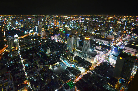 我们从帕库科隆市场旁边的纪念大桥站乘坐快艇,到达郑信大桥,从这里可以坐BTS到Siam站下,这里是最繁华的的商业中心,我们走了1km多的路,到了baiyoke sky tower享用81层露台晚餐,因为天下着小雨,我们被迫搬到室内,但仍然挡不住出去拍照的冲动。