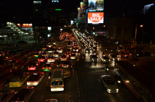 从baiyoke sky tower出来已经是晚上十点了,我们在楼下搭乘出租车回去。刚开始有些司机不打表叫价200B,没坐。另一次坐进去了,司机坚持不打表,又说了一堆我们听不懂的泰语,遂下车。刚下车,就有一辆的士经过,我们马上上车,司机是一位头发花白的老先生,我说to asok station,司机就很爽快答应了,没有乱要价。最后达到的计价是56B,我给了他60B,让他keep the change。