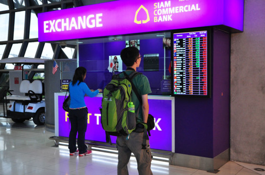 在查询汇率。机场的汇率都很差,兑换货币的话最好去市区货比三家再下手。
