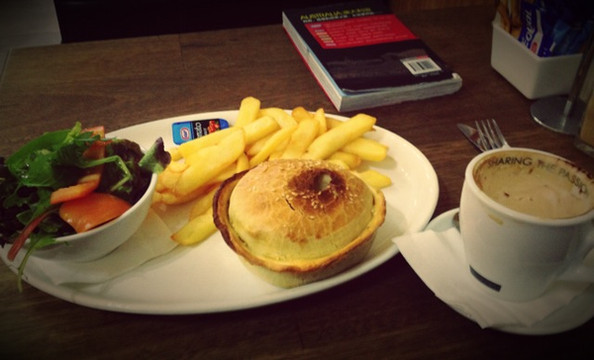 中午吃的蘑菇pie,比碗还要大,薯条足有两根手指粗~