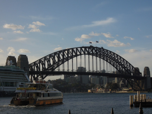 提到悉尼,所有人都知道的海港大桥,当地居民叫它“衣服架”,从1857年开始,由1400名工人花了8年时间才建好,耗资1350澳元,据说有600万颗铆钉固定,也是唯一一座可以攀爬的大桥,从旁边两侧的桥墩电梯上去,再沿着拱形的侧面爬到桥的最高处,只要攀登大桥就能获得一张合影和证书,这绝对能让你在朋友中炫耀一回。我是没有这份胆量的,还是在下面看看热闹吧~
