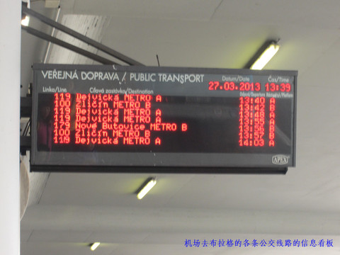 我们将从机场搭乘 100路 巴士去“ B ” 线地铁 Zlicin METRO 站,再转乘地铁“B”去 Hloubětínská 站的贝拉酒店。还有15-6分钟,这 100路巴士就要开车了!