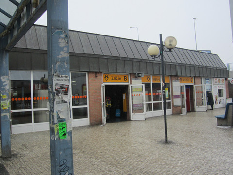 100路巴士开的很快,不多会就到了终点站,大家抬头去找不到想国内机许多国家那样的明显的地铁的标识,再看下车后的大多数人去的方向,一个很不起眼的处所,一排简屋就是字网上经久出现的,从国际机场去的必经之地,这个地铁站--- Zlicin METRO-B线