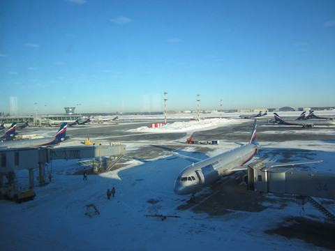 莫斯科时间早晨07:35,飞机准时降落在莫斯科机场,窗外白茫茫一片