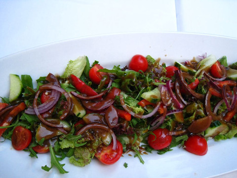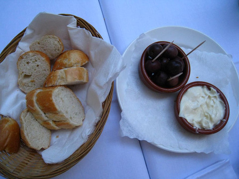 晚上在酒店门前的露天餐馆吃饭,餐具很美,小羊排和西班牙辣椒煎的很好,鸡和沙拉的味道不错,红酒醇厚大蒜面包也好吃。(花了52欧很便宜呀)。