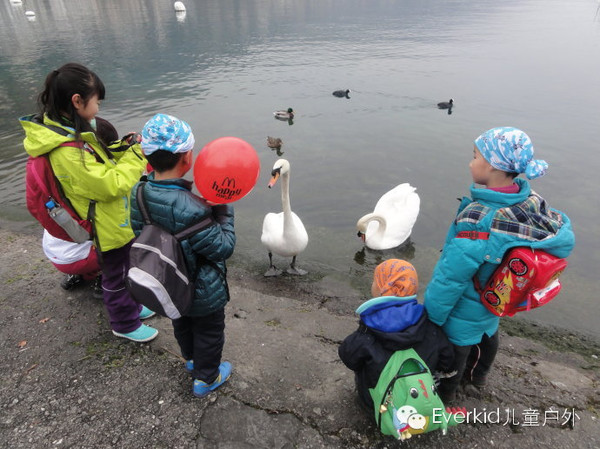 第二天我们前往被称为田元诗史般的城市-,我们洞着前往西庸古堡,一路上小营员们被各种新奇的小发明吸引。小营员们站在湖边马上吸引了许多海鸟的包围,在教官的引导下营员对鸟的种类有很深的了解,每个小营员在当天活动总结的时候都能说出至少六种鸟类的名字。二只美丽的天鹅也过来和我们的小营员们零距离接触。