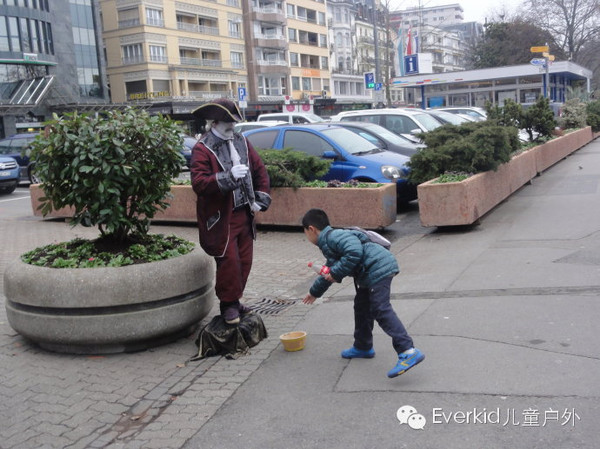 有的学员看到了路边的艺人表演,拿出硬币以示支持!