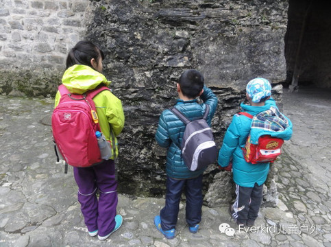 到了西庸古堡小家伙们又开始研究起古墙,这里许多事物对他们都是新鲜的,这也深深的打开了他们的求知欲。