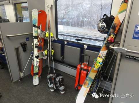 火车提供了最人性化的服务,车上有专门放置自行车或者滑雪板的空间,还且还有专门固定滑雪板的装置。